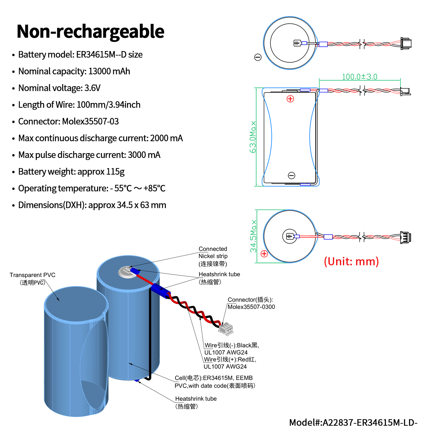 Lithium ion (Li-ion) batteries are designed to feature a high energy density, a high capacity, a light weight and a high power. The voltage of the cylindrical type is 3.7V; and the voltage of the button type is 3.6V.