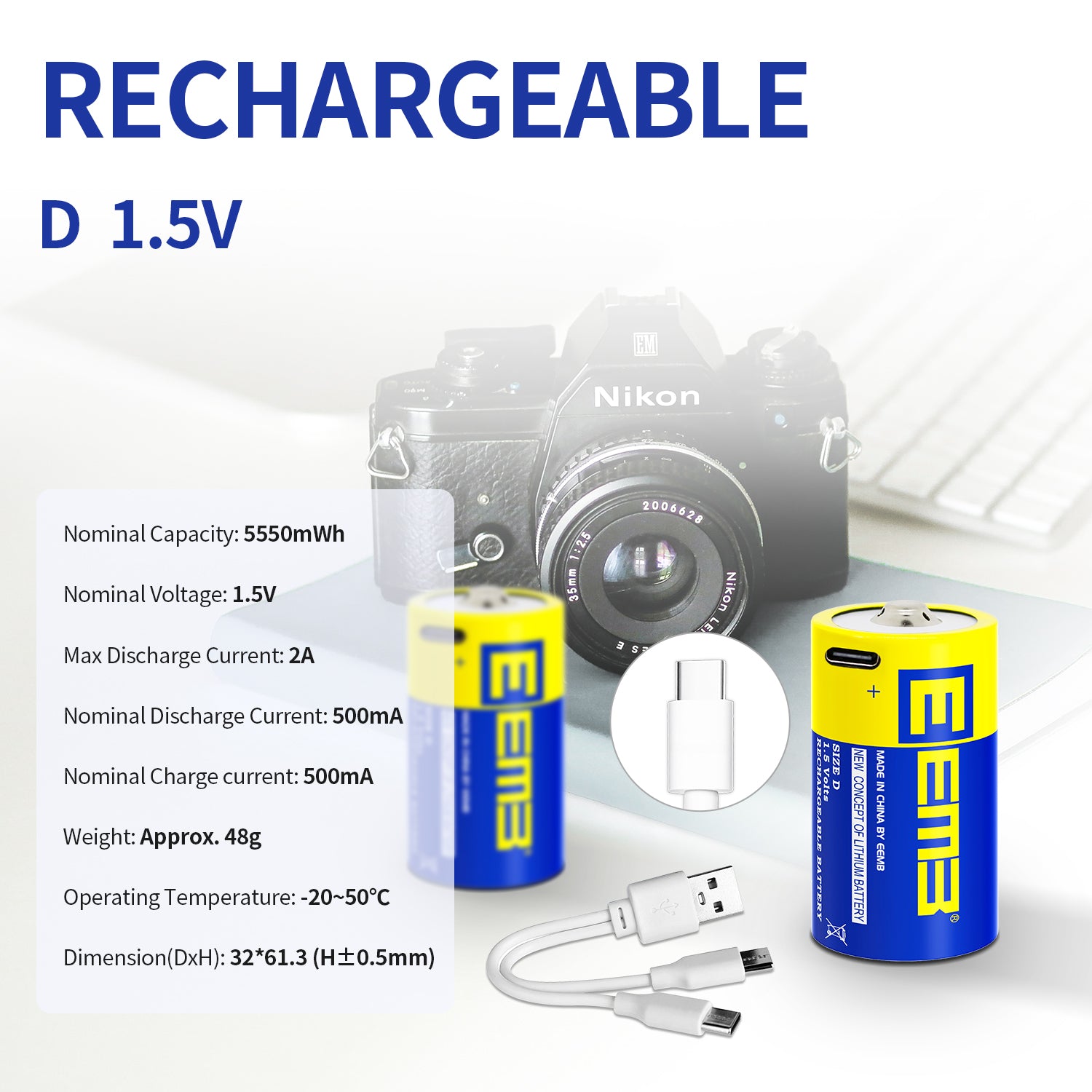 LIRD -- 1.5V D USB Lithium Rechargeable Battery